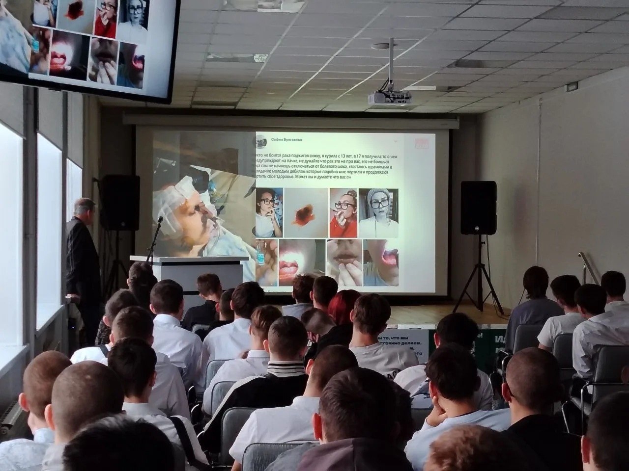 Студенты посмотрели специальный видеоролик, наглядно демонстрирующий последствия употребления электронных сигарет. После просмотра Вячеслав Михайлович ответил на вопросы ребят, рассказывая о вреде вейпов и пропагандируя здоровый образ жизни.