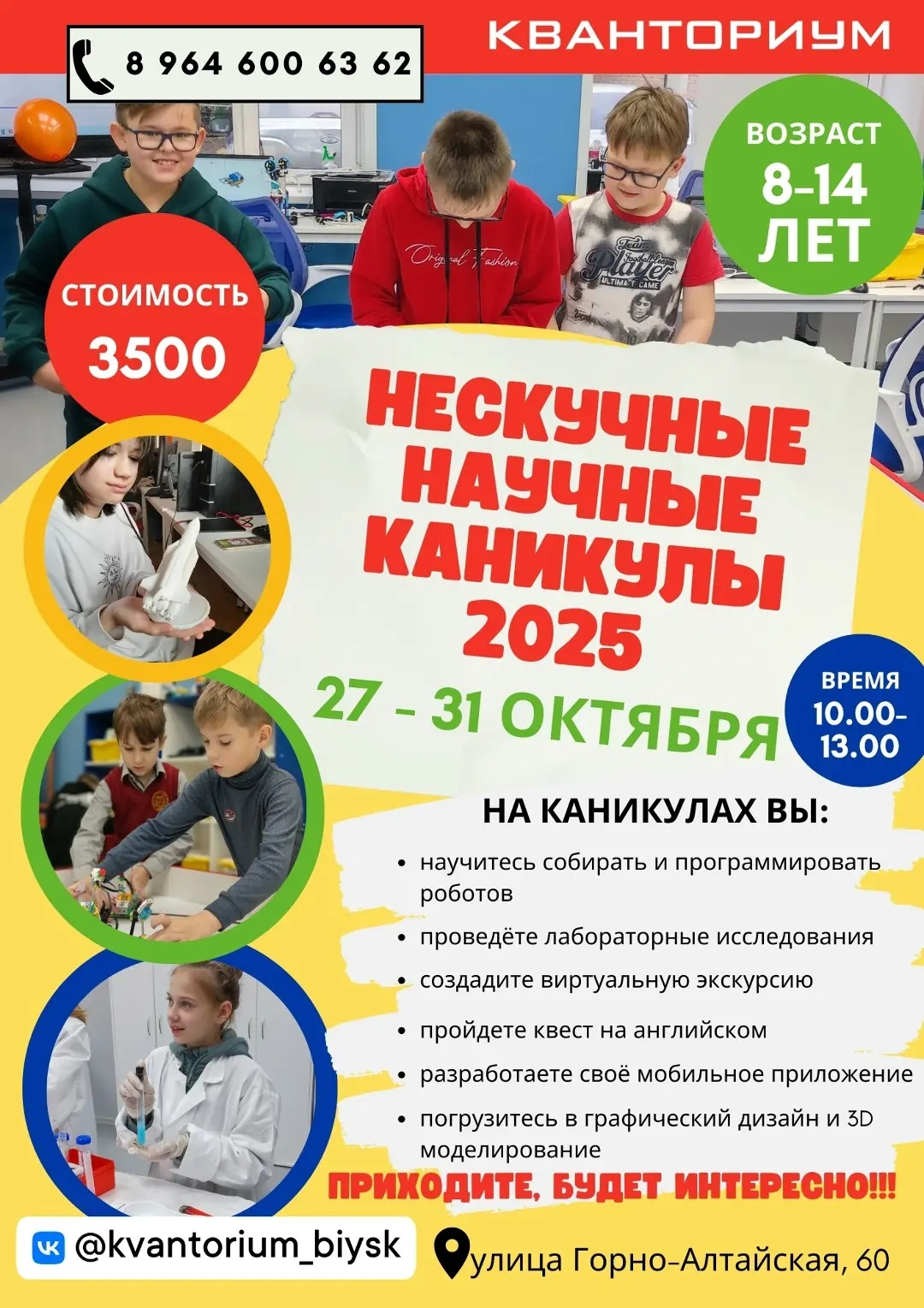 Записывайтесь на каникулы в Кванториум! 8 964 600 63 62